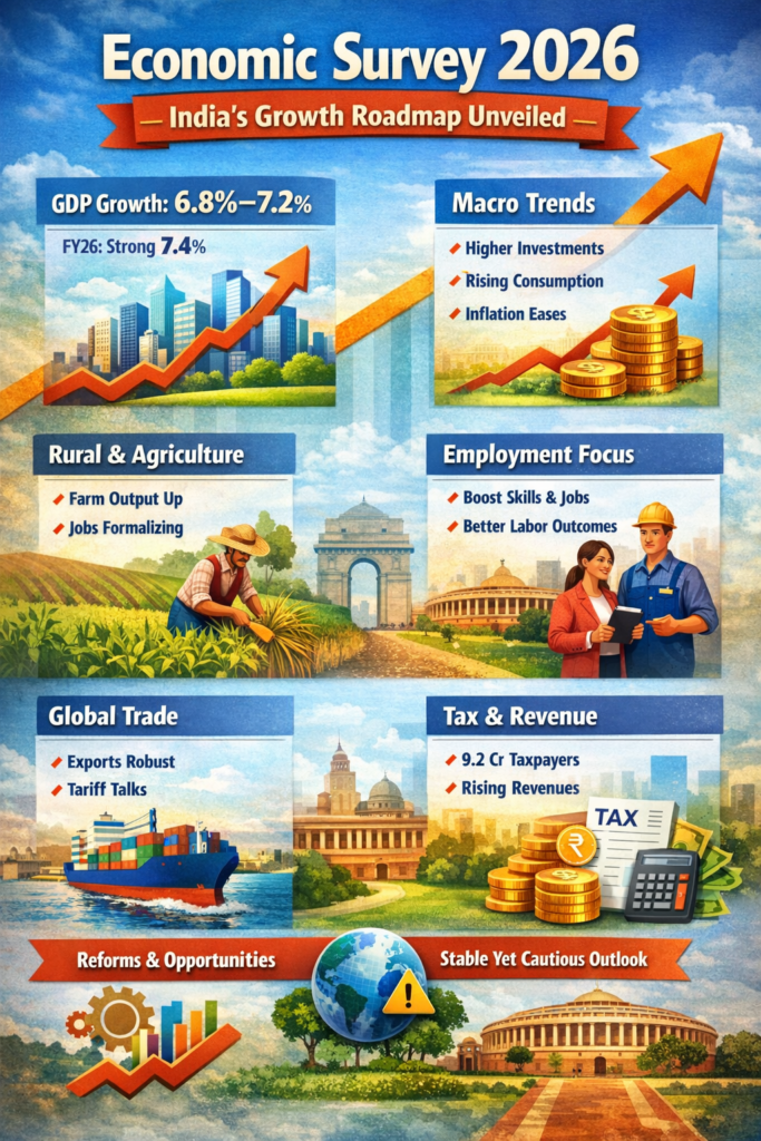 Moreover, the Survey analyses growth, inflation, jobs, and fiscal health. It relies on data and evidence. Importantly, it does not announce policies. Instead, it guides policy thinking. Overall, the Economic Survey links economic review with fiscal planning. Consequently, it helps stakeholders understand the economic direction.