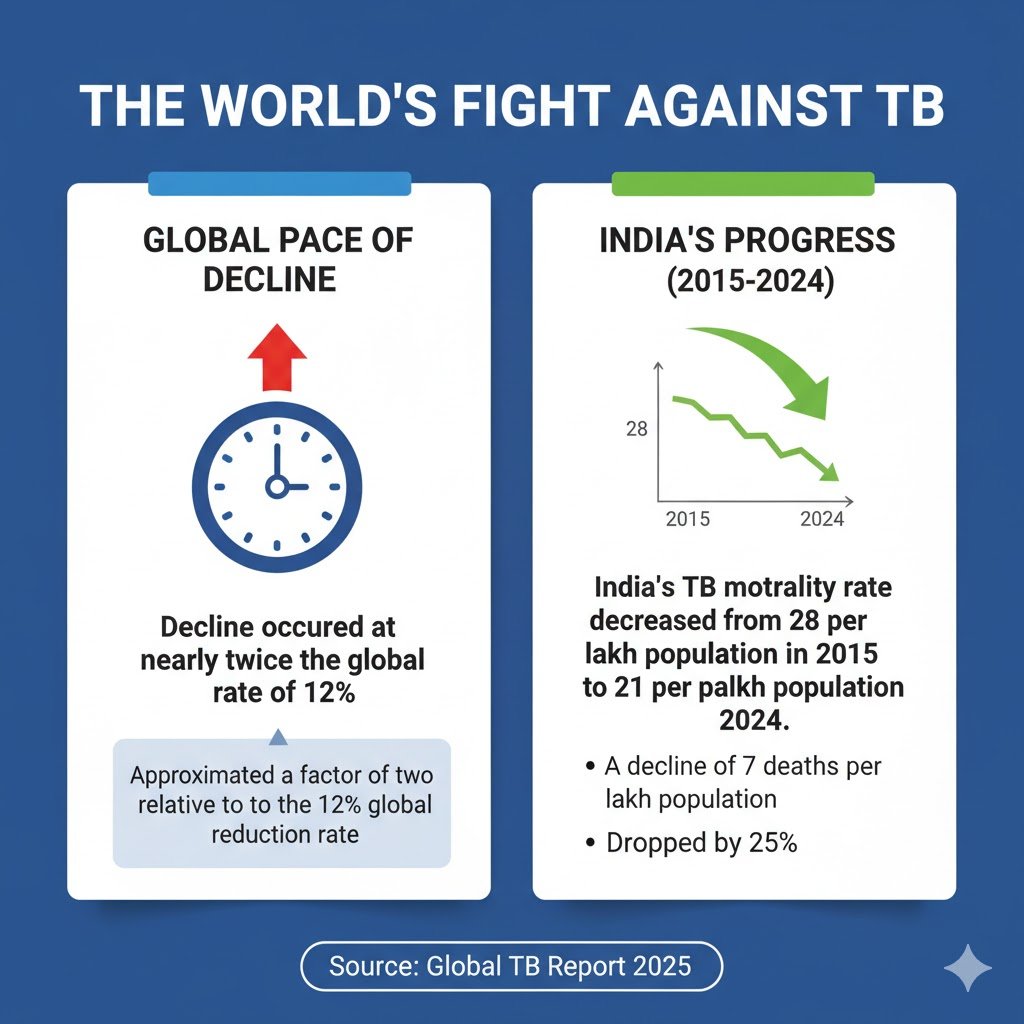 The World Health Organization’s released Global Tuberculosis Report 2025. India’s TB incidence (new cases emerging each year) reduced by 21%. It declined from 237 per lakh population in 2015 to…